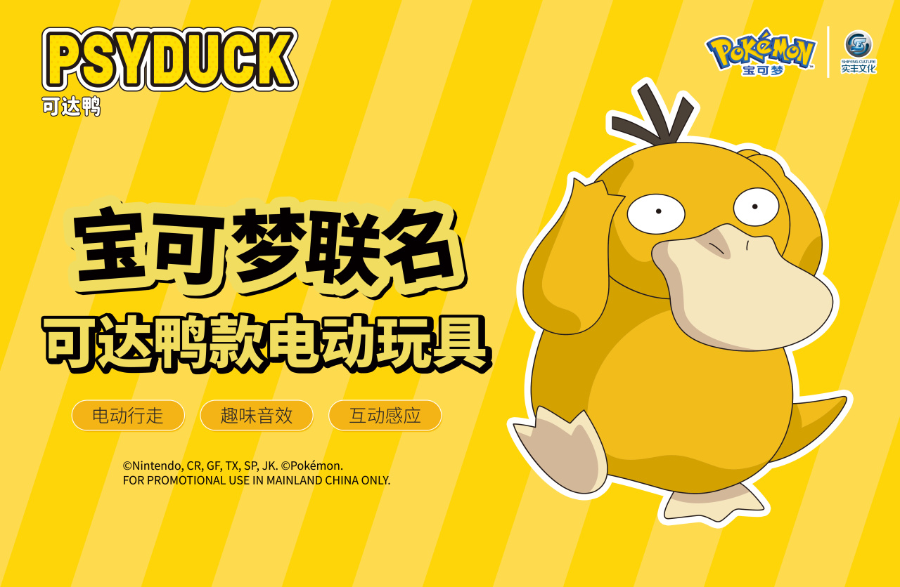 近日,實豐文化發(fā)展股份有限公司(以下簡稱“實豐文化、“公司”)在擁有全球知名動漫IP寶可夢的場景套裝玩具系列和可達(dá)鴨款電動玩具的中國內(nèi)地與中國港澳臺地區(qū)授權(quán)后,再度獲得前述玩具的新加坡、馬來西亞、越南、印度尼西亞等國家的授權(quán),吹響“出?!碧柦?!